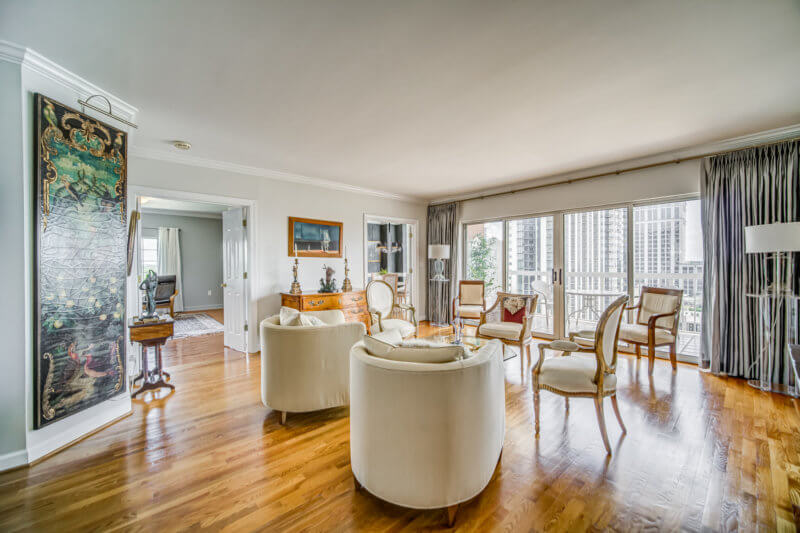 Enjoy European boutique condominium living in Atlanta! This corner unit provides breathtaking views from two balconies. The home features a spacious living room, dining room and beautiful hardwood floors. The kitchen features white cabinetry, granite countertops, tile backsplash, and not to mention, a sunny breakfast area. The owner’s suite boasts dual closets, a newly renovated ensuite bath with heated floors, a large walk-in shower, under vanity lighting, stylish finishes, and premium fixtures. A spacious secondary bedroom includes built-in bookshelves and an adjoining bath. In addition, the building features a rooftop pool, terrace, and a club room, perfect for entertaining and resident get-togethers. Further, amenities include a fitness center, concierge, 2 secure premium parking spaces, and guest suites available. Located within walking distance to shopping and restaurants at Phipps Plaza, Lenox Square, and the Marta Station.